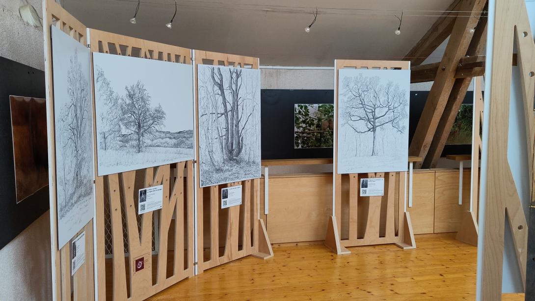 Avec cette exposition (et le livre, également disponible), l'auteur nous propose un voyage artistique au sein de la relation profonde entre arbres et humains. Durant l'été 2023, le Centre d'art "La Maison Laurentine" accueille Clément Gy, architecte dessinateurs, dans le cadre d'une résidence de création dans le sud de la Haute-Marne. C'est ainsi qu'il va rencontrer 11 personnes aux parcours très différents, mais qui ont en commun une relation unique avec un arbre. Ce sont autant d'histoires singulières qui s'expriment, où l'arbre devient témoin, confident, passeur. Clément Gy mène les entretiens au pied de chaque arbre élu, puis seul face à cet arbre, avec la mémoire de l'histoire confiée, il réalise 11 dessins en grand format in situ.