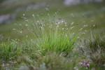 La pelouse montagnarde à Séslérie est une pelouse sèche, souvent en pente ou en petite terrasse, où l’herbe n’est pas très haute et couvre environ les trois quarts du sol. Elle est dominée par la Séslérie bleuâtre, accompagnée de la Phalangère rameuse et de petites plantes typiques des prairies, comme la Germandrée petit chêne et le Thésium des Alpes.