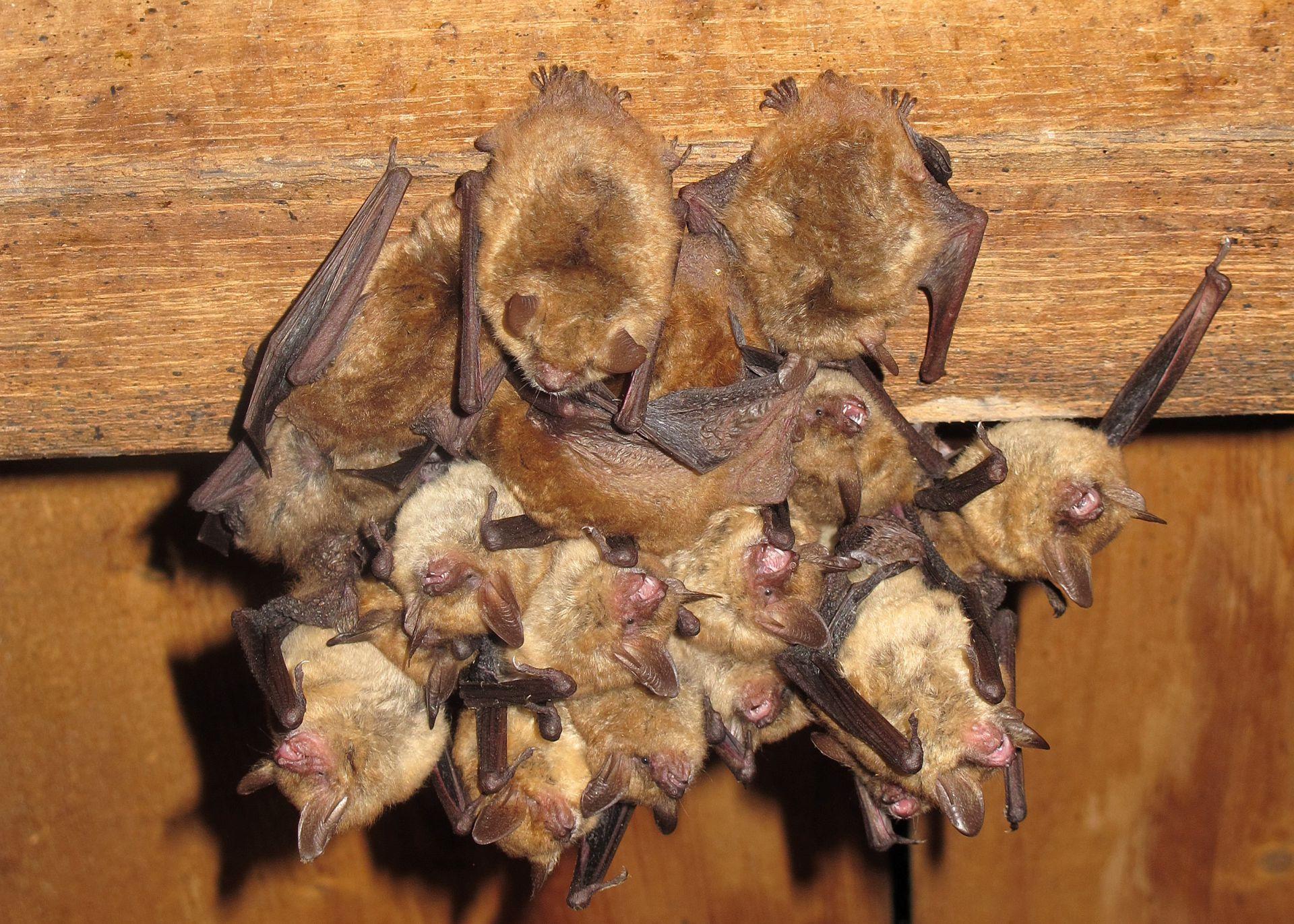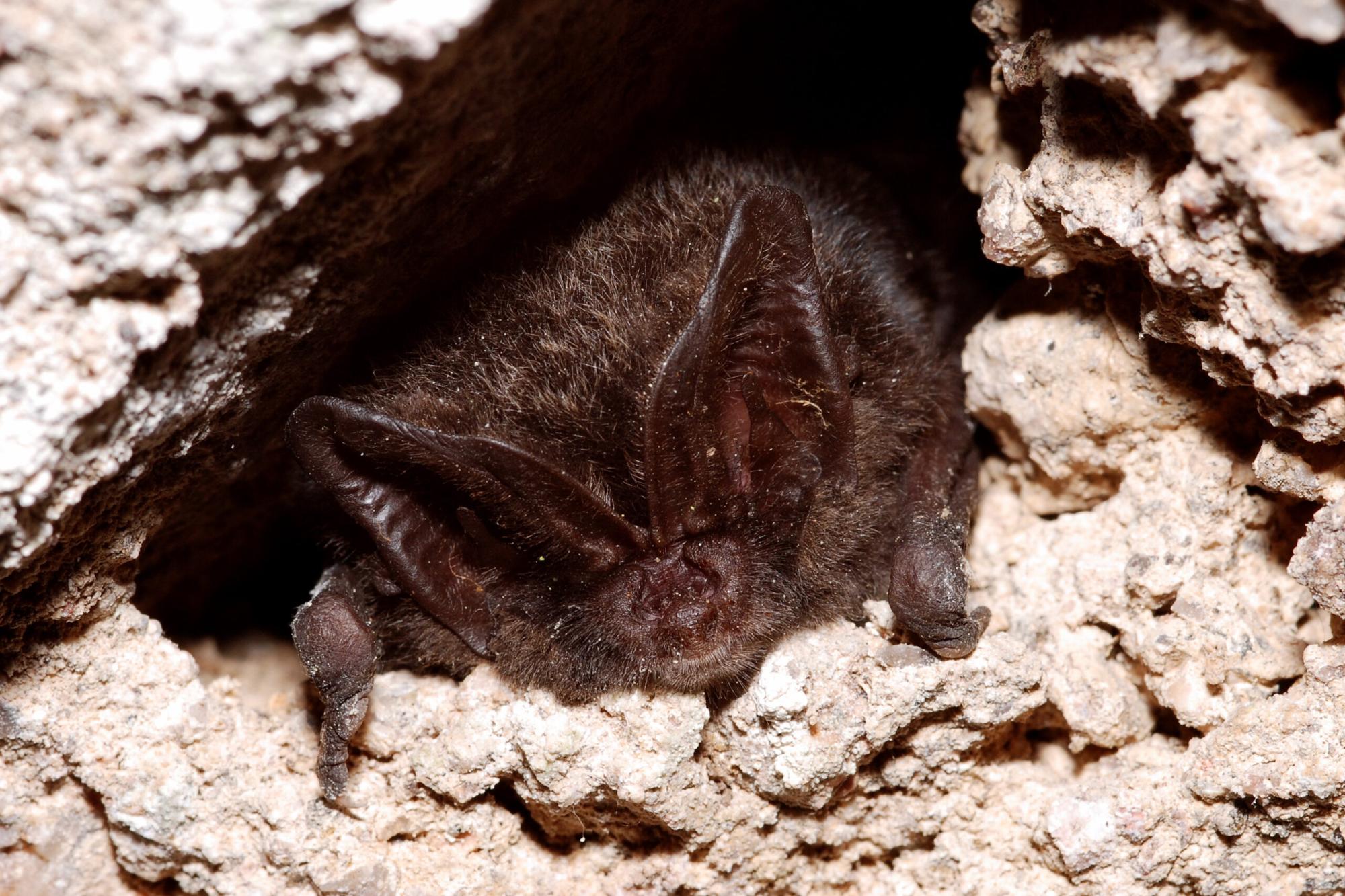 - Le Murin à oreilles échancrées est une chauve-souris, facilement identifiable à sa nette échancrure sur le bord des oreilles. Moins sensible à la lumière que toutes les autres espèces européennes, elle hiberne jusqu’à sept mois, ce qui constitue un record en Europe, principalement dans des cavités souterraines naturelles ou artificielles, tout en se montrant largement sédentaire. En été, elle forme des colonies de reproduction dans des bâtiments (combles, greniers, clochers), souvent en association avec d’autres espèces comme le Grand Rhinolophe. Elle chasse en lisière de forêts, bocages, prairies et vergers, en capturant surtout araignées et diptères (mouches, moustiques), au vol ou en glanant sur la végétation. L’espèce, inscrite aux annexes II et IV de la directive Habitats‑Faune‑Flore et protégée au niveau national, concentre ses effectifs dans des populations souvent limitées et reste menacée par la perte de gîtes, les dérangements, les traitements de charpentes ou la disparition des habitats de chasse.