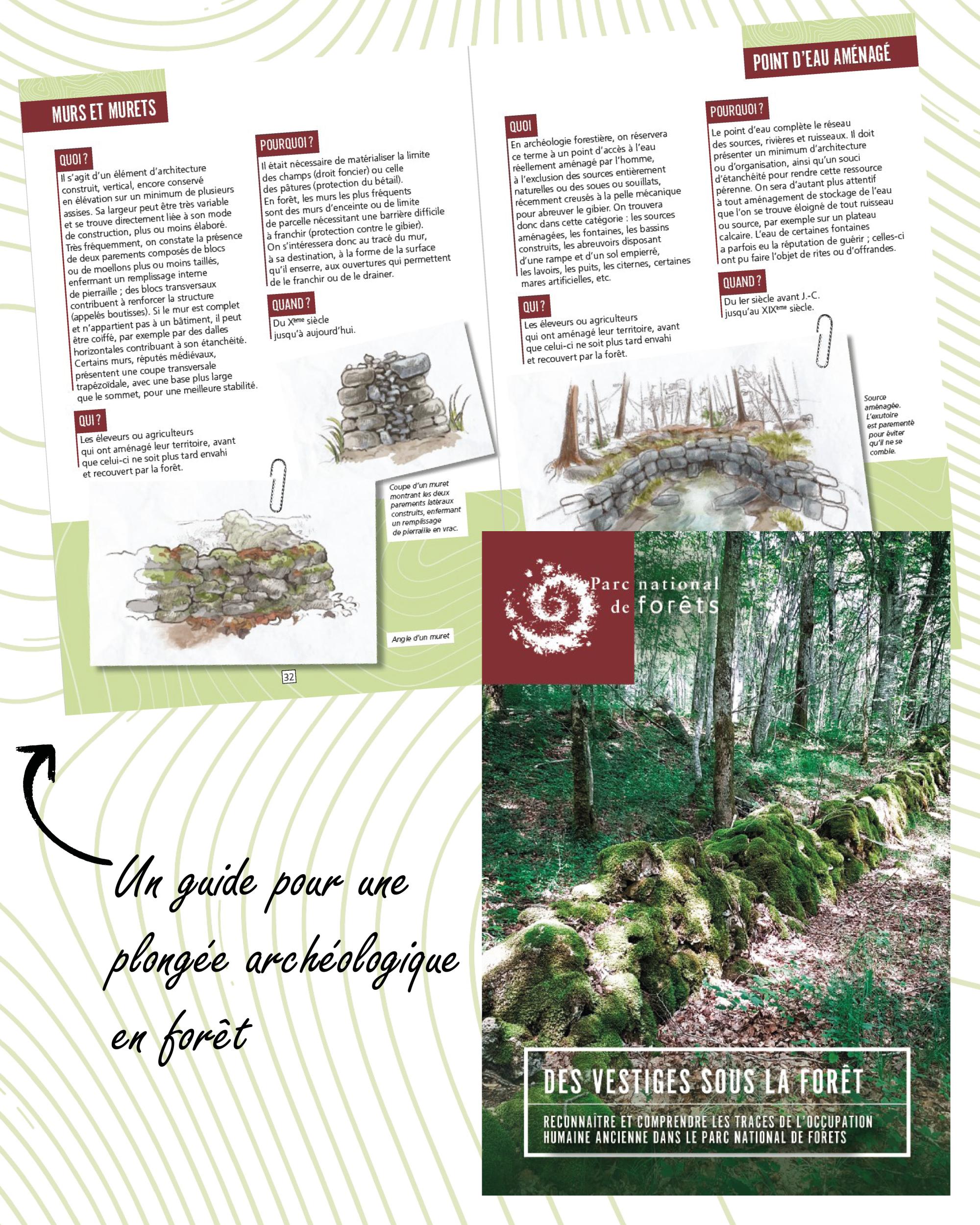 "Des vestiges sous la forêt" est un guide qui vous permettra de reconnaître et comprendre les traces de l'occupation humaine ancienne dans le Parc national de forêts. Que vous soyez férus d'archéologie ou simplement curieux, cet outil vous permettra de remonter le temps, à la croisée des voies romaines et des cabottes (et bien d'autres vestiges !)